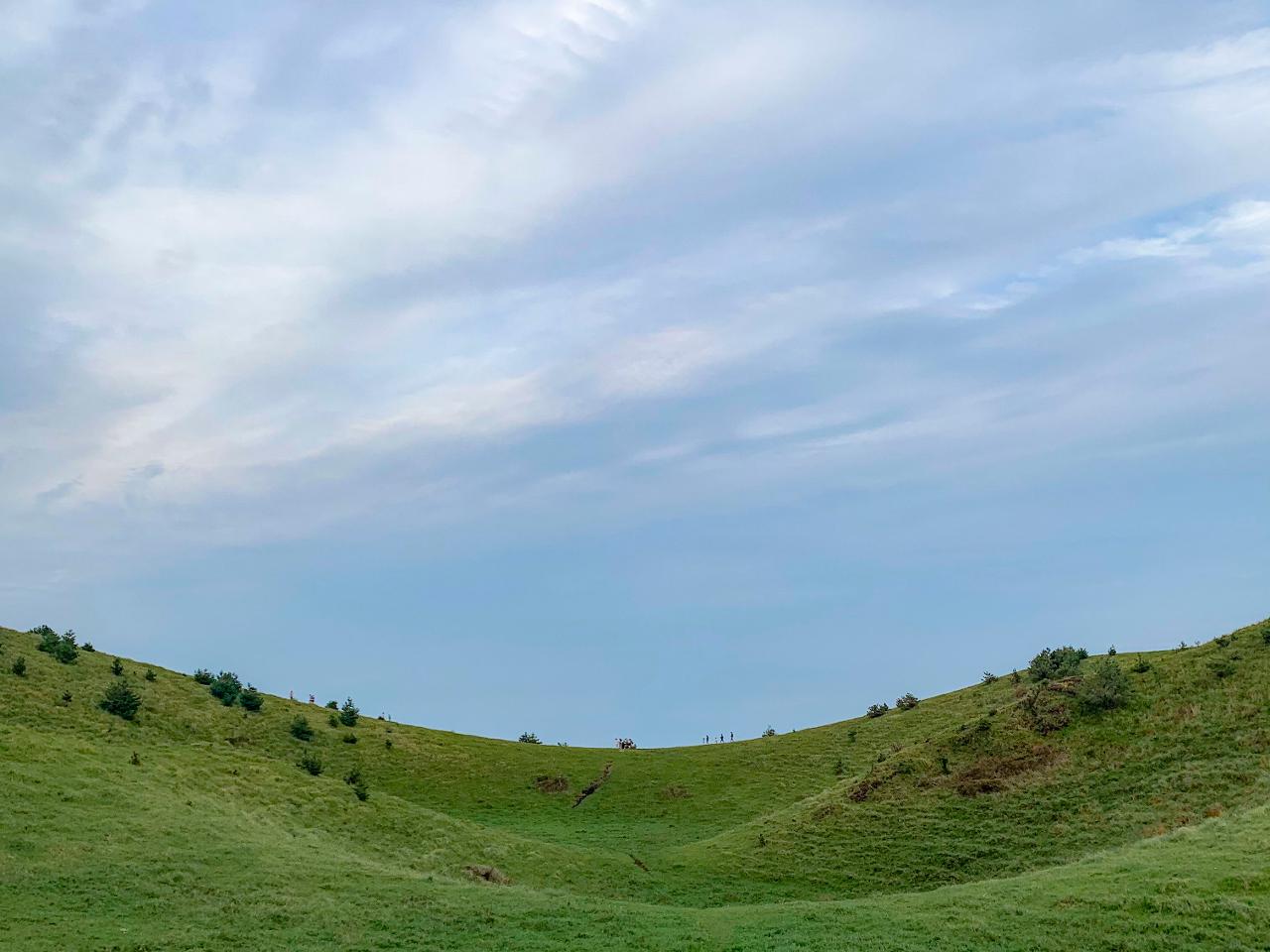 분화구와 능선을 따라 걷는 길이 매력적이며, 푸른 초원이 펼쳐져 있어요.