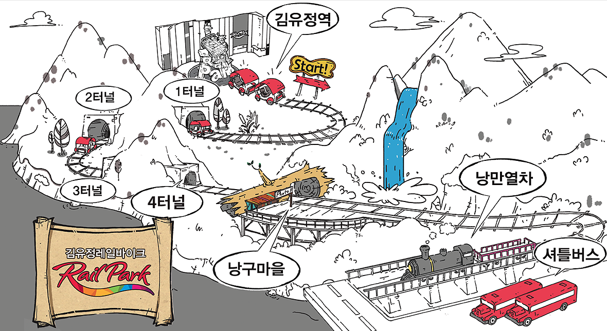 - 자가용: 네비게이션에 '김유정레일바이크' 또는 '강원특별자치도 춘천시 신동면 김유정로 1383' 입력