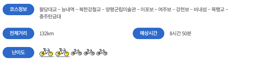 - 초보자는 팔당대교 → 능내역 구간부터 시작하는 것을 추천합니다.